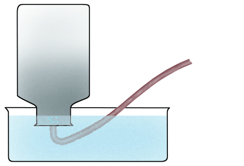U gasnoj smesi svaka vrsta molekula gasa vrši pritisak kao kad bi bio sam, a ukupni pritisak je zbir pritisaka svakog pojedinog gasa u smesi, pa je pritisak vazduha jednak stvarnom pritisku vazduha koji je uvećan za pritisak vodene pare u njemu. To se odnosi i za ma koji gas koji se nalazi iznad neke tečnosti, što je prikazano na slici. Kada se kiseonik, sakupljen iznad površine vode, usisava (vidi sliku) ispod prevrnute boce, ukupni pritisak gasa iz boce biće jednak zbiru parcijalnih pritisak ubačenog kiseonika i pritiska vodene pare. |